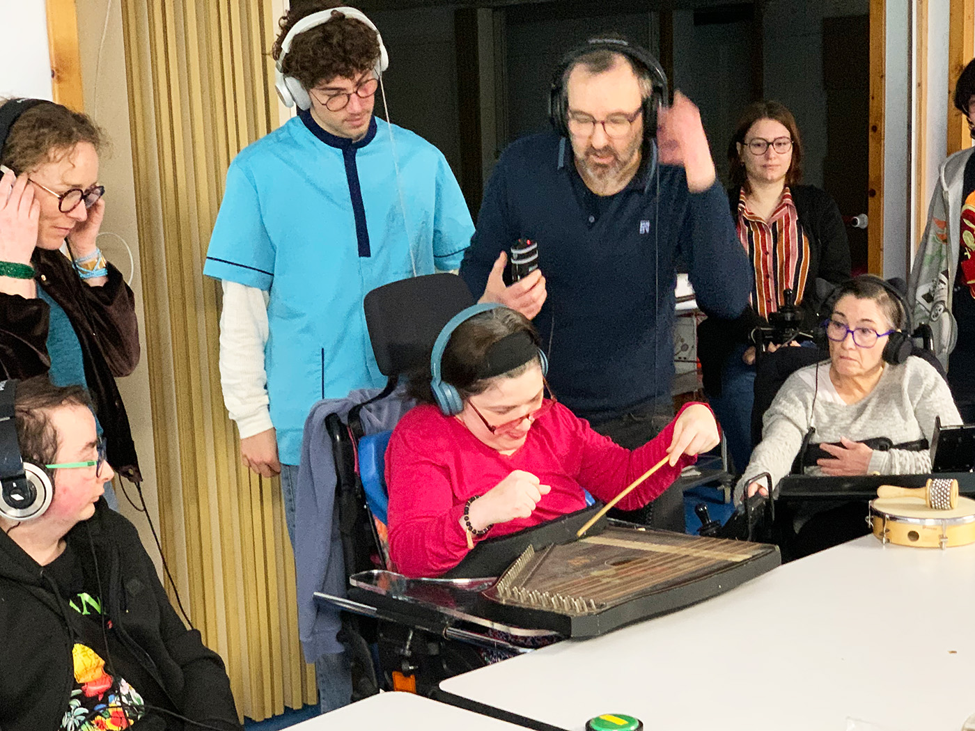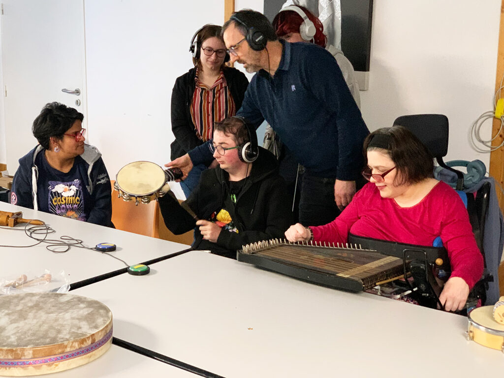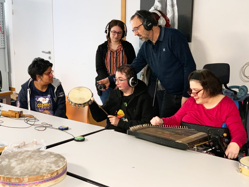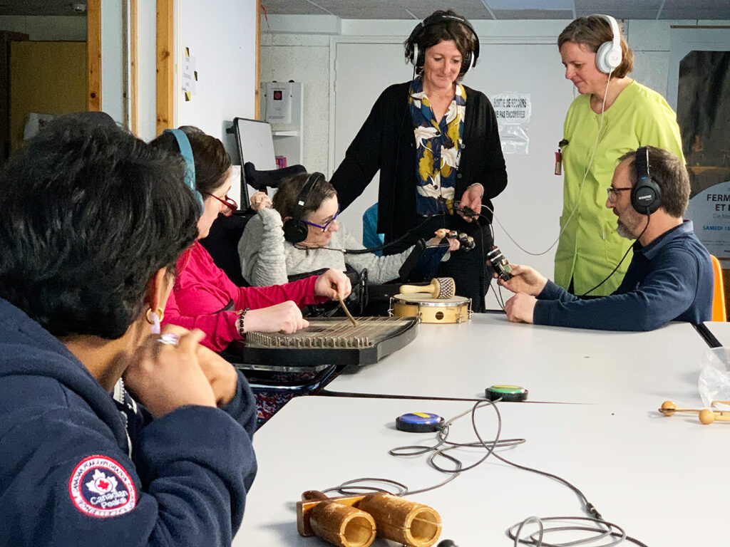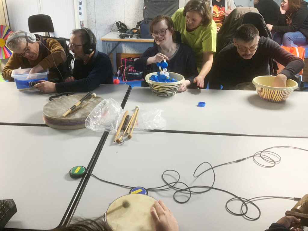 Depuis près de 4 ans, l’Ensemble Nautilis anime régulièrement des ateliers musicaux aux résidents des quatre établissements qui participent au projet de l’Albatros Social Club, un grand orchestre composé de musicien·nes professionnel·les et d’amateur·ices en situation de handicap.