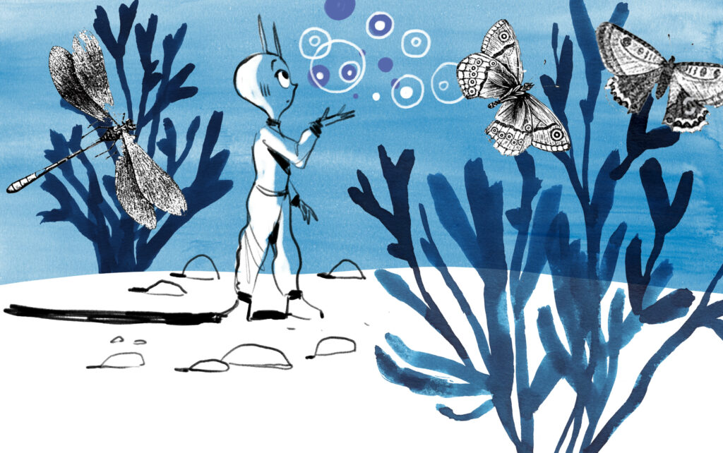 Le concert-dessiné jeune public “Même Pas Mort!” est encore en cours de création, mais quelques images et quelques sons commencent à lever le voile sur ce spectacle sensible et poétique où musique et dessin en direct s’entremêlent pour vous raconter l’histoire d’une petite fille habitant sur une planète éloignée, confrontée au décès de sa grand-mère…