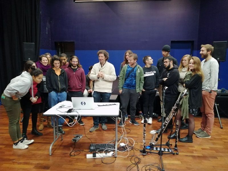 Lors de l’Atlantique Jazz Festival 2022, une cabine – le PhotomaSon – a été installée au restaurant universitaire de la faculté de sciences de Brest, dans laquelle les étudiants pouvaient chaque midi enregistrer un son : une parole, un cri, un poème, un bruit, un souffle … le compositeur Etienne Hendrickx élaborait dans la foulée une courte pièce électronique, uniquement à partir des enregistrements du jour, qui était diffusée le lendemain en ouverture des concerts du cycle « l’Heure Magnétique ». Lueurs Élastiques permet d’entendre à la suite les 4 pièces composées au cours de le semaine du festival.